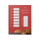 My practice record notepad, with a violin image set on a red background. With days of the week fields, you can keep track of your practice sessions. White lettering can be customised with your own text, great for staying on track with violin lessons!