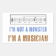 Music literacy matters! This design features a treble clef with the spoke lyrics: "I like to eat" and "I like kittens" if read properly. If not, then people will think you're a monster. Makes a great gift for music teachers, musicians, choir members, singers, and anyone who likes a good music joke. "I'm not a Monster I'm a Musician" appears in blue and orange text.