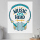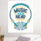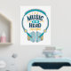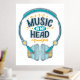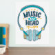 Colourful illustration of a pair of headphones and the text "Music in my Head" perfect for music lovers and music collectors and enthusiasts.