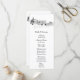 This card allows you to describe your wedding party on one side, and your wedding ceremony program on the other. Customise if you need to add extra lines of text. Featuring a black treble clef, musical staff, and music notes against a white background.
