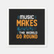 Music Makes The World Go Round in orange and blue on black. Makes a great gift for singers and musicians or anyone else who just truly loves music!