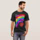 I give wanted to give this a 4 instead of a 5 because these Basic DARK T0shirts run unexpectedly SLIM or Narrow. Which is great if you do not have a potbelly, but I have a paunch. It isn't the shirt's fault that I've got a beer belly. The design and shirt itself is a quality cotton shirt. The color is more of a deep purple, but still a very pretty color. The Basic DARK T-shirts run a bit SLIMMER than the Basic Ts. The neck is a fraction narrower (or seems to be narrower) also. I'm a paunchy middle-aged woman and my neck is 12 inches (31cm) thick and the neckline fell about the same as in the photo of the man, and I had the desire to tug it a bit. So if you're a thick necked man or like loose shirts, be aware these are slimmer shirts. Once I get rid of my lockdown paunch it'll look great. The shirt washed well in cold water with no apparent bleeding. We don't have a dryer, so it hung dry. Did not shrink. Love the colors and the design. The design looks smaller on my shirt than it does on the model on-line. But still, it looks good on the shirt. The printing looks as it does on the model, just the size seems fractionally smaller. Washed garment in cold water, hung dry and design appeared unaffected.