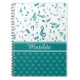Music Notes and Hearts Pattern Teal and White Notebook
