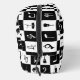 Perfect gift for the music lover with a design featuring various musical notes and instruments on a stylish black and white squares design.