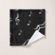 Wavy lines of music, musical notes and a treble clef in white on black make a great striking music themed towel set, or choose just the hand towel for kitchen or bath.