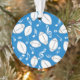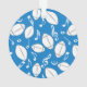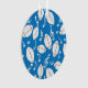 A jumble of white footballs and white music notes against a blue background is a unique music design for musicians, music teachers and students.