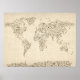 A map of the world made from a music notation - notes, crochets ,clefs, time signatures and many more, all on an antique style background.