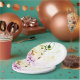 Party paper plate shown in a cute colourful music notes print. Shown in 7" size.