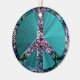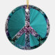 Music Notes Peace Sign Holiday Ornament. A peace sign filled with musical notes on metallic teal or turquoise blue green. Peace on Earth and Happy Holidays!