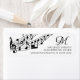 Personalised, custom colour return address labels featuring a piano keyboard and music staff with notes in your choice of graphics and background colours or choose from a selection of designer graphic backgrounds and monogram in your choice of font styles and colours to create your own custom look in EDIT. The sample shows black and white. ASSISTANCE: For help with design modification or personalisation, colour change, transferring the design to another product or if you would like coordinating items, contact the designer BEFORE ORDERING via the Zazzle Chat MESSAGE tab below or email makeitaboutyoustore@gmail.com.