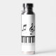 Modern, personalized music-themed water bottle featuring a piano keyboard and music notes with a name, monogram or custom text in your choice of colors and font styles (shown in black and white). Ideal for music teachers, musicians and music professionals. ASSISTANCE: For help with design modification, contact the designer BEFORE ORDERING via the Zazzle Chat MESSAGE tab below or email makeitaboutyoustore@gmail.com.