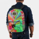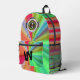 Headphones surround a mandala with music themed layers including guitar and standard sheet music, an equalizer, sound waves, and a record titled "Music of Life". Whether you play music yourself or just enjoy listening, this design encourages you to "play it." Customise the initial on the front pouch of this backpack with your own monogram to make this accessory uniquely yours.
