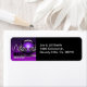 Super fresh, a round purple icon cartoon character with headphones and equalizer refelective sunglasses on. Sound waves pouring out to the left of his head. The word MUSIC with a reflection and a funky purple striped pattern in the background.