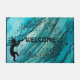 Music Notes Southwestern Kokopelli turquoise rock with gold veins. Southwestern Style Native American Doormat Music. Vivid colour turquoise teal colour combination. Native American Indian cultures. Attributed to ancient aliens or tribal art and inspired by cave and rock drawings. Customise your Southwestern Style Native American door mat rug styles. Great gift idea. You can add welcome or message text to suit your taste.
