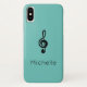 Music Symbol device case, with a cute black treble clef design set on a teal green background. With black lettering, you can personalise with your own name. Great for adding a musical touch to your cell phone.
