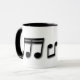 In this simple, black and white design, is the word MUSIC formed with musical elements. M= three sixteenth notes beamed together, U= two eighth notes beamed together, S= a segno (used to signify a repeat playing of a section of music), I= a quarter rest with a staccato (shortened silence, maybe? little joke), and C= cut time or cut-common time signature. Ideal for chorus, choir, and band. Would be a great gift for a director, composer, accompanist, pianist, or any musician.