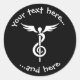 Snake and treble clef caduceus. Customisable colour vector icon. Two custom text fields on circle.