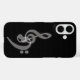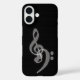 A classy simple black/white music themed Music - Treble and Bass Clef iPhone 16 Case - white treble and bass clefs against a textured black background. Music Love.