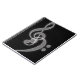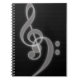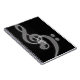 A classy simple black/white music themed notebook - white treble and bass clefs against a textured black background. Perfect for your music notes!