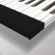 Custom wrapped canvas for music lovers with beautiful still life featuring a red rose on black and white grand piano keys and slogan: "Music will save the world". Image also available as poster and other prints.