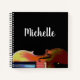 Musical instrument notebook with an elegant violin image. With a black background, you can be personalise with white script typography lettering. A fun item that is great for a student taking notes in orchestra class or keeping organised in your home office.