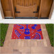This design is a mix of different musical instruments in blue and white with a red background. Also available a smaller size with the same design. This image is available on a variety of other products, just click the link below the photo near 'About this Design'.
