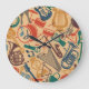 Musical Instruments Vintage Seamless Background Large Clock