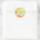 A musical note icon on a green and orange background. This design looks really effective on these Stickers