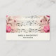 Business cards with a elegant and nostalgic design. Music sheet decorated with pink roses around the edges.