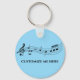 A cool custom music teacher keychain featuring a musical staff with notes on a blue background. Order for a musician, composer, band or orchestra conductor, or choir director and personalise with their name.