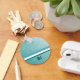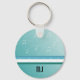 A cool design featuring white musical notes dancing about on a teal background. Customise with your initials as desired.