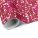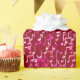 A cascade of musical notes in fuchsia pink, pale pink, beige and cream on a deep burgundy wine background