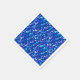 A cascade of musical notes in turquoise, violet, pale pink, aqua and white on a deep indigo blue background