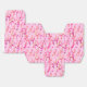 A cascade of musical notes in shades of pink, orchid, coral and magenta on a soft, shell pink background