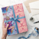 MUSICAL PINK CLOWN WITH OWL Pink Flower Petals Wrapping Paper