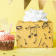 Black music symbols on gold background.
