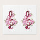 Pink treble clef with delicate, detailed pink Japanese cherry blossoms against white background painted over with light blue paint. Blooming pink sakura.