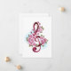 Pink treble clef with delicate, detailed pink Japanese cherry blossoms against white background painted over with light blue paint. Blooming pink sakura.