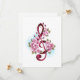 Pink treble clef with delicate, detailed pink Japanese cherry blossoms against white background painted over with light blue paint. Blooming pink sakura.