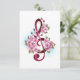 Pink treble clef with delicate, detailed pink Japanese cherry blossoms against white background painted over with light blue paint. Blooming pink sakura.