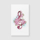 Pink treble clef with delicate, detailed pink Japanese cherry blossoms against white background painted over with light blue paint. Blooming pink sakura.