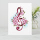Pink treble clef with delicate, detailed pink Japanese cherry blossoms against white background painted over with light blue paint. Blooming pink sakura.