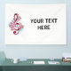 Pink treble clef with delicate, detailed pink Japanese cherry blossoms against white background painted over with light blue paint. Blooming pink sakura.