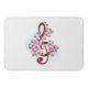 Pink treble clef with delicate, detailed pink Japanese cherry blossoms against white background painted over with light blue paint. Blooming pink sakura.