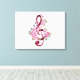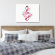 Pink treble clef with delicate, detailed pink Japanese cherry blossoms against white background painted over with light blue paint. Blooming pink sakura.