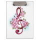 Pink treble clef with delicate, detailed pink Japanese cherry blossoms against white background painted over with light blue paint. Blooming pink sakura.