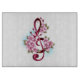 Pink treble clef with delicate, detailed pink Japanese cherry blossoms against white background painted over with light blue paint. Blooming pink sakura.