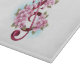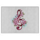 Pink treble clef with delicate, detailed pink Japanese cherry blossoms against white background painted over with light blue paint. Blooming pink sakura.