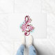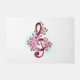 Pink treble clef with delicate, detailed pink Japanese cherry blossoms against white background painted over with light blue paint. Blooming pink sakura.