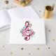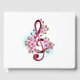Pink treble clef with delicate, detailed pink Japanese cherry blossoms against white background painted over with light blue paint. Blooming pink sakura.